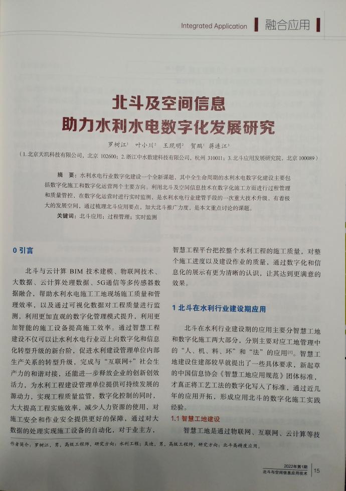 摘 要:水利水电行业数字化建设一个全新课题,其中全生命周期的水利水电数字化建设主要包括数字化施工和数字化运营两个主要方向。利用北斗及空间信息技术在数字化施工方面进行过程管理和质量管控,在数字化运营时进行实时监测,是水利水电行业建管手段的一次重大技术升级,有着极大的发展空间,通过梳理北斗应用要点,加大北斗推广力度,是本文重点讨论的课题。